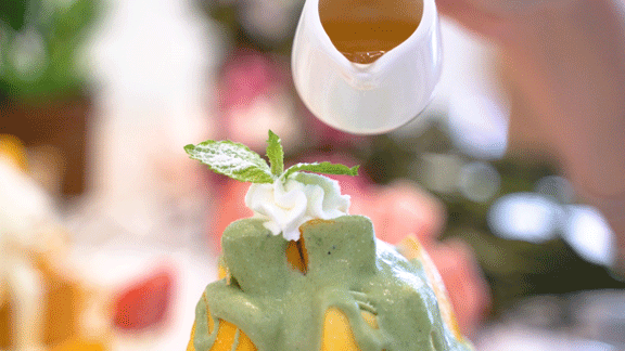 人气单品第二款,当属抹茶岩浆芒山。浓稠的抹茶“岩浆”沿着芒果流下,像是抹茶色的火山迸发一般。