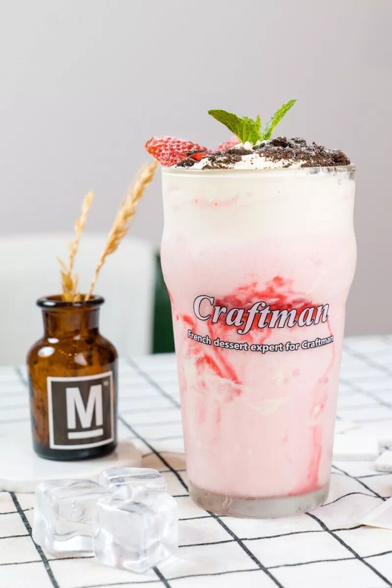 每一杯都是加上了新鲜的草莓,才会喝到这种新鲜的味道哟,喝的时候还能喝到芝士块和草莓粒呢!