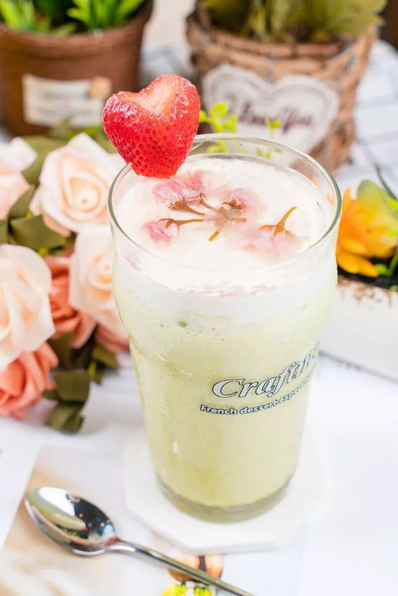 樱花镜面下除了有一层绵密香甜的淡奶油,杯底的抹茶味芭菲会给你带来以往喝开的饮品不一样的味蕾效果。建议用吸管,这样就能一次性将三种口感一并吸入,妙不可言。