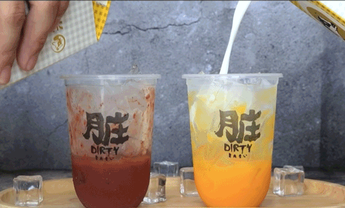 谁说脏脏奶都是泥石流?乐乐茶的脏脏奶明明就是彩虹般绚烂的存在!新鲜的水果泥华丽“转身”为colorful的果泥挂壁,再被晨光牛奶冲刷变成绚烂的脏脏奶!