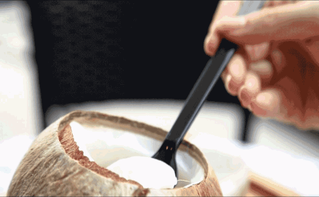 舀起一勺,椰子冻duang,duang地颤抖着,Q弹堪比果冻,让人欲罢不能。放入口中,滑如丝绸,入口即化。