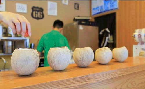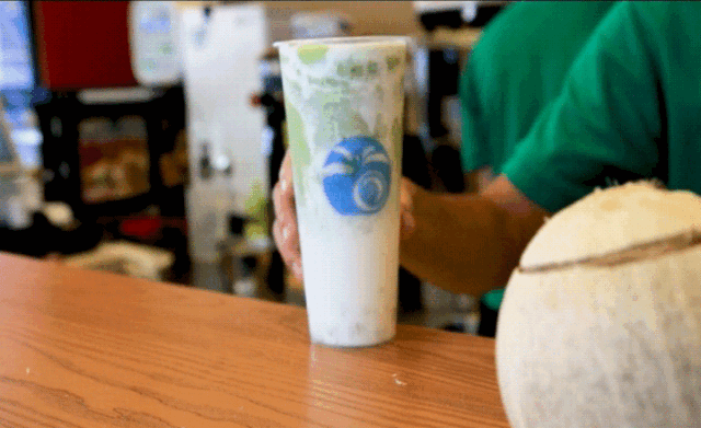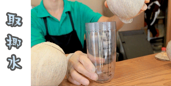 椰子系列由年轻的店长亲自研发,所以他对待每一杯产品超级严格!每日不厌其烦现开50~60个椰子,取椰水、椰肉,按反复试验得出最佳比例,混合熬煮出作为原料的椰汁。