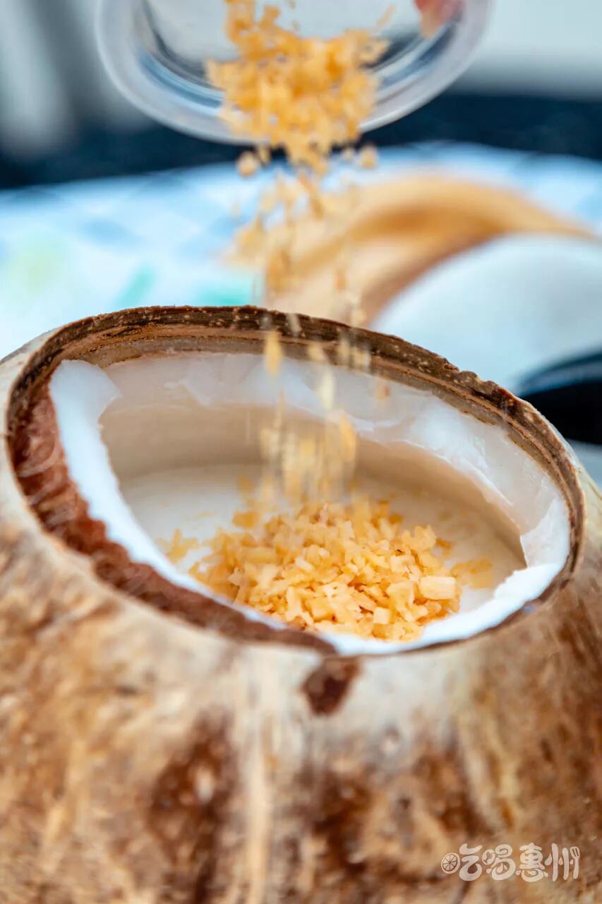 做“椰”,茶椰椰很较真!有道是:喝椰汁选椰青、吃椰肉选椰皇。茶椰椰则爱用老椰子,它介于前两者之间,椰肉虽不厚却脆嫩有嚼劲,椰水甜度不高却添了一份奶香,二者混煮出的椰汁,不用加任何辅料就足够美味!