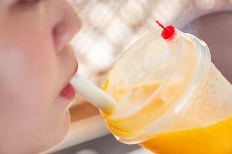 ✔第一步:直接插进吸管喝,先品尝椰奶的香甜,再慢慢品尝芒果的清新;