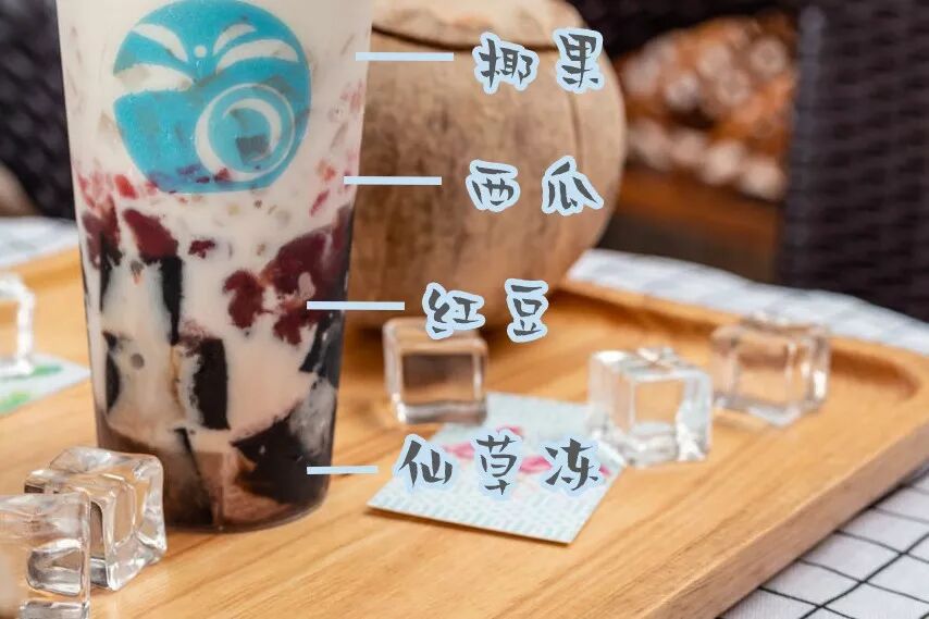 如果说你是个“花心”之人,觉得喝斋椰汁不过瘾,那就来一杯椰吧!这杯之所以叫“椰”,完全是因为配料太多了,导致老板都不知道叫啥好。