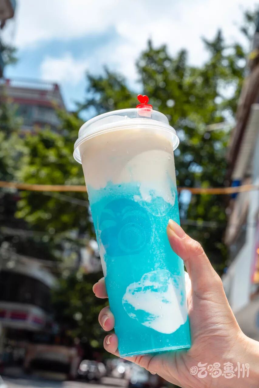 最后,告诉大家一个未来的网红“神饮”——天空之城.芝士。惠州清澈的蓝天白云,都在这杯蓝柑橘芝士冰沙里。在乌云密布的日子,点一杯,让你的心情放晴。