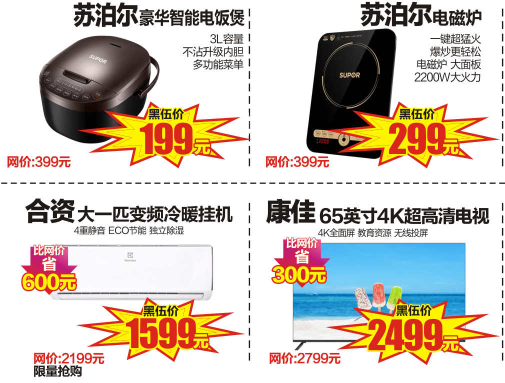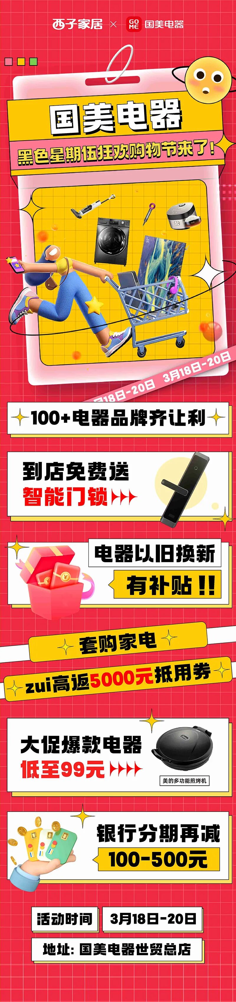 国美从2015年开始,将“黑色星期伍”引进中国,打造中国版 “黑色星期伍”购物狂欢节。连续7年,累计参与品牌突破2000次,服务超900万个家庭!
