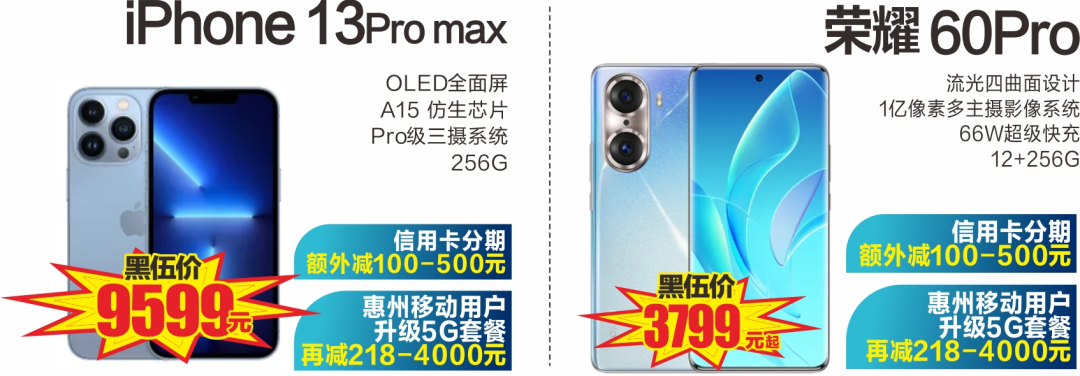 惠州移动用户升级或者办理5G套餐,在补贴叠加下,再降218至4000元。