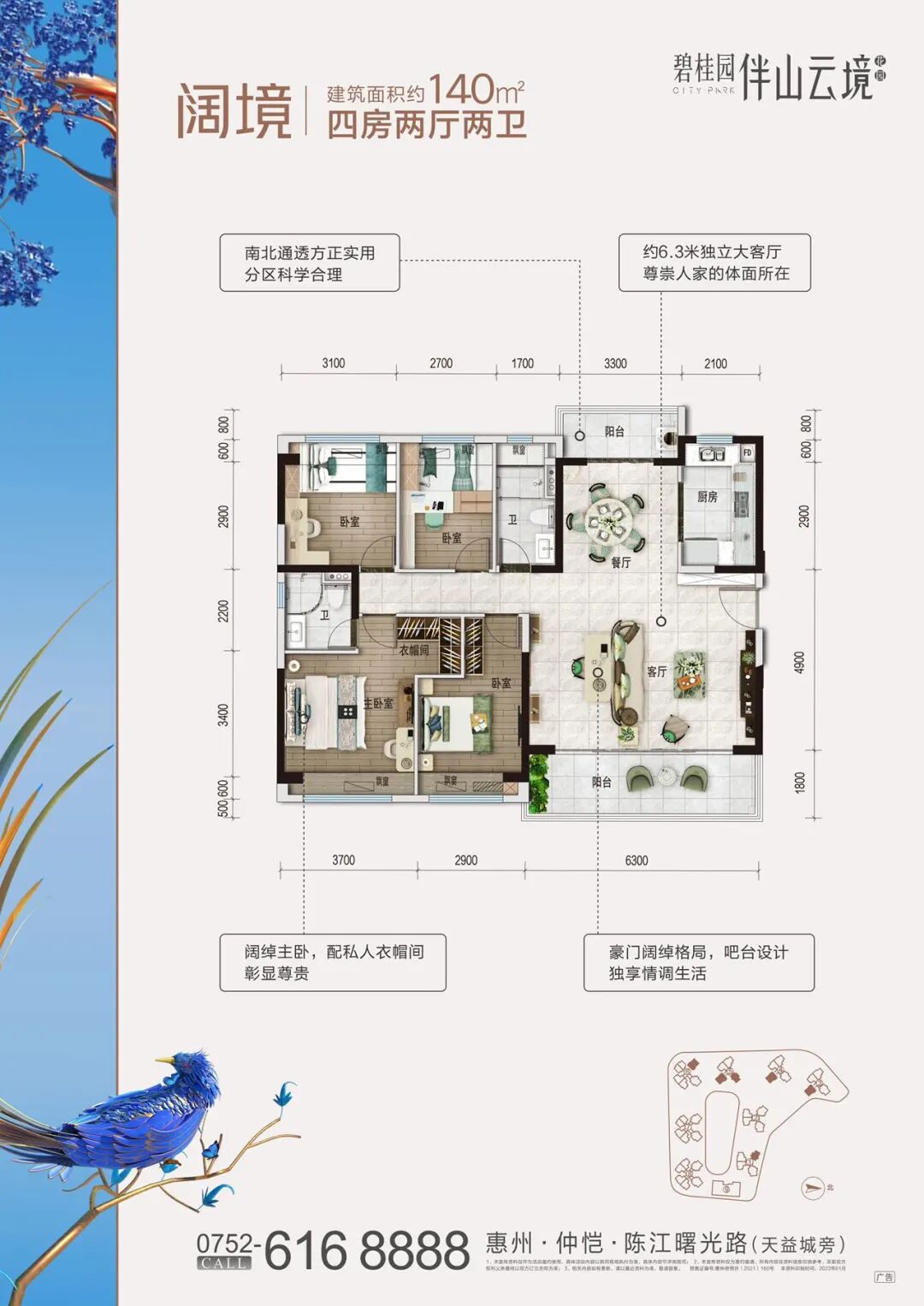 现项目主推约96-140㎡3-4房带装修公园美宅,注重空间尺度与舒适感,格局方正,动线合理。
