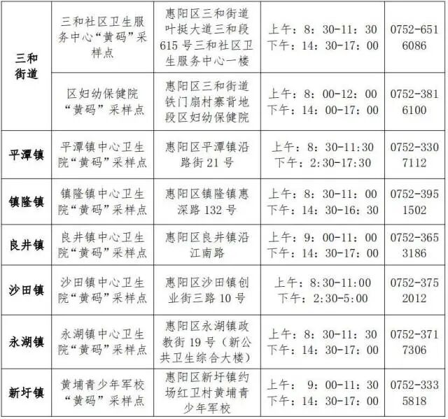 3月6日晚,惠州市惠阳区疫情防控指挥部办公室发布通告称,根据4名密切接触者在惠阳区活动轨迹的排查情况,如在以下时间段有到过相关区域活动的人员,请按相应要求自觉落实防控措施并尽快开展1次核酸检测。