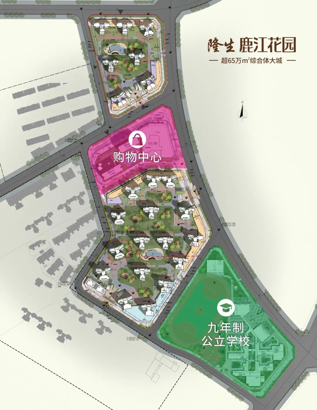 利用业态和区位优势,隆生鹿江花园通过独特业态叠加,形成“大社区+综合体商业+高端住宅+时尚公寓+九年制公立学校”立体发展模式。以住宅为核心,商业、学校双强配套组合,成为片区最强的流量制造机,将极大提升所在板块的能级和价值,带动区域快速崛起。