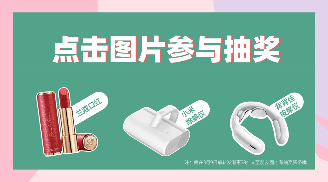 更多活动详情可见3月10日“港惠购物中心”头条推文哦!