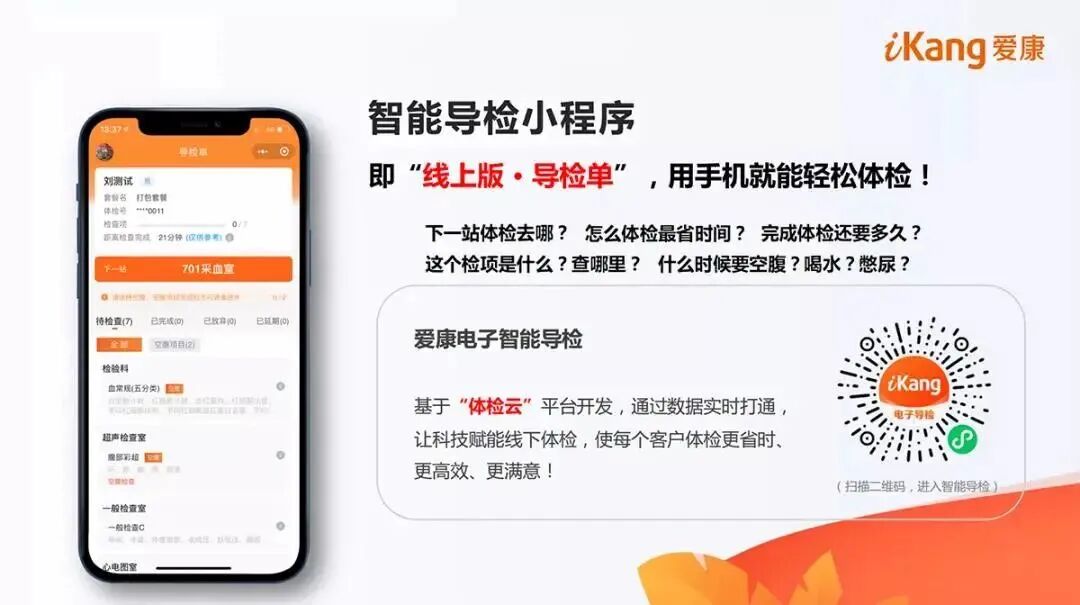 如果不清楚下一步的流程,可以先扫码进入“爱康导检小程序”,这里就可以明确自己的下个需前往的科室,避免过长时间的等待。