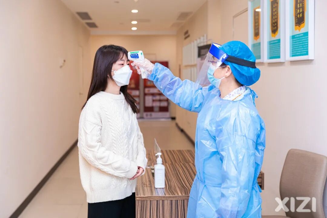 进门处护士小姐姐就会做好体温检测,登记好个人行程信息,确保给每一位前来检查的朋友一个安全的环境。