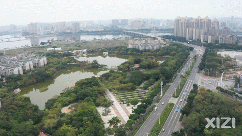 公园外就是惠州最长的大道惠州大道,东江在不远处,熙熙攘攘的车流,可想而知的热闹。