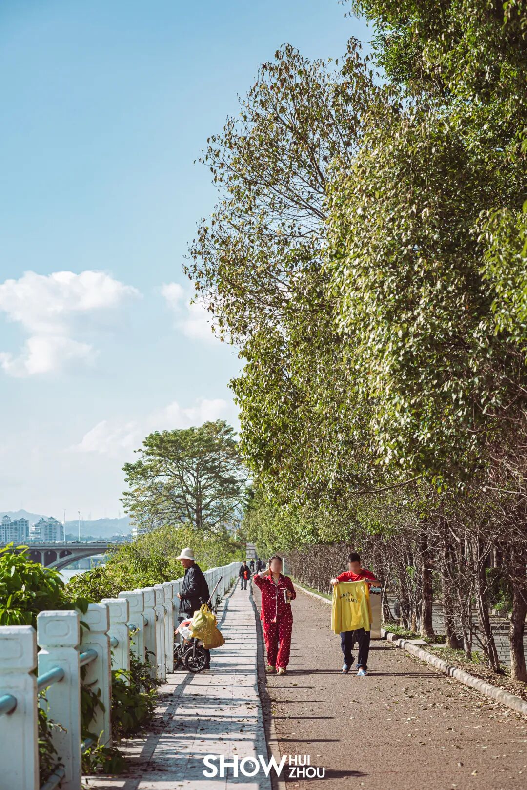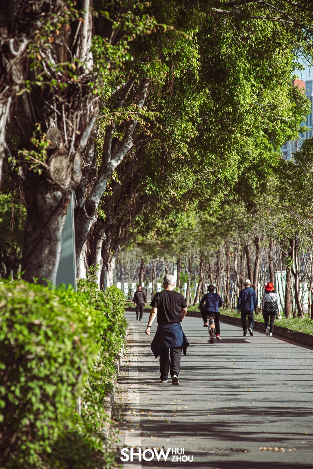 地处南方,温润的亚热带季风气候适合常绿阔叶林生长,惠州植被得以经年保持绿色。在温和的冬日暖阳中,东湖环岛路的树呈现出缤纷各异的绿。